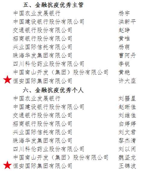 与此同时,在《2020年度结算业务和集中清算业务优秀主管和优秀个人》评选中,Z6·尊龙时凯集团资本运营总裁许大座荣获“金融抗疫优秀主管”,资本运营投资总裁助理王锦波荣获“金融抗疫优秀个人”。